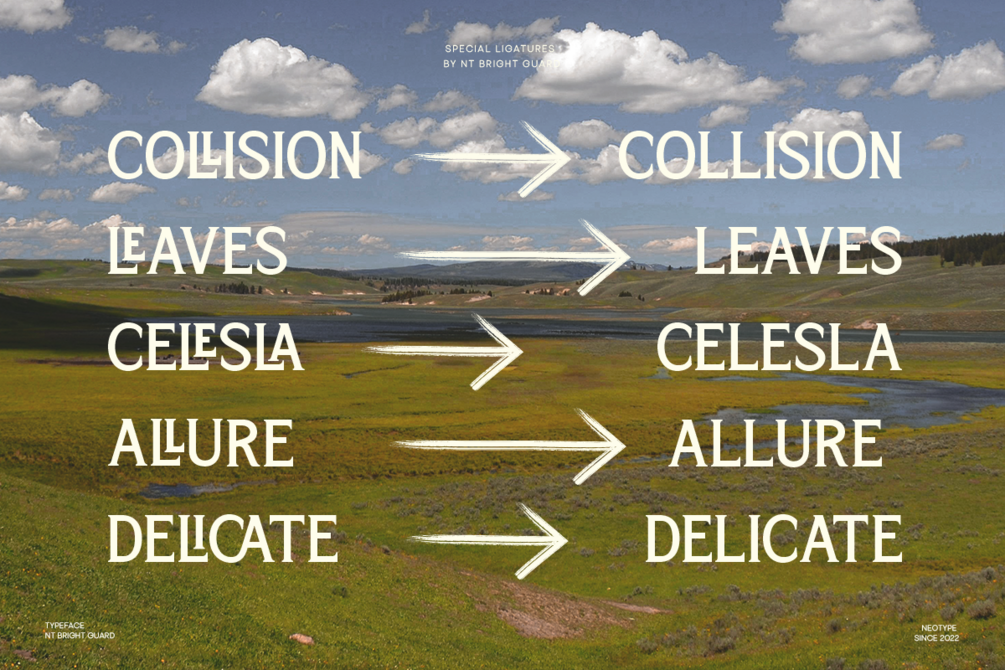 With striking ligatures, sharp serifs, and versatile alternates, Bright Guard is ideal for luxury branding, editorial headlines, logos, and packaging. Each character is thoughtfully designed to bring a sense of legacy and leadership into your typography.