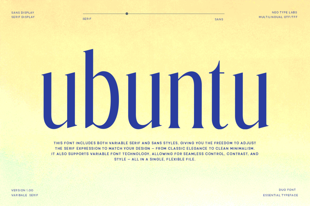 NT Ubuntu is a versatile variable font that seamlessly blends the elegance of serif with the clarity of sans serif—giving designers complete freedom to craft a typographic voice that fits any purpose.