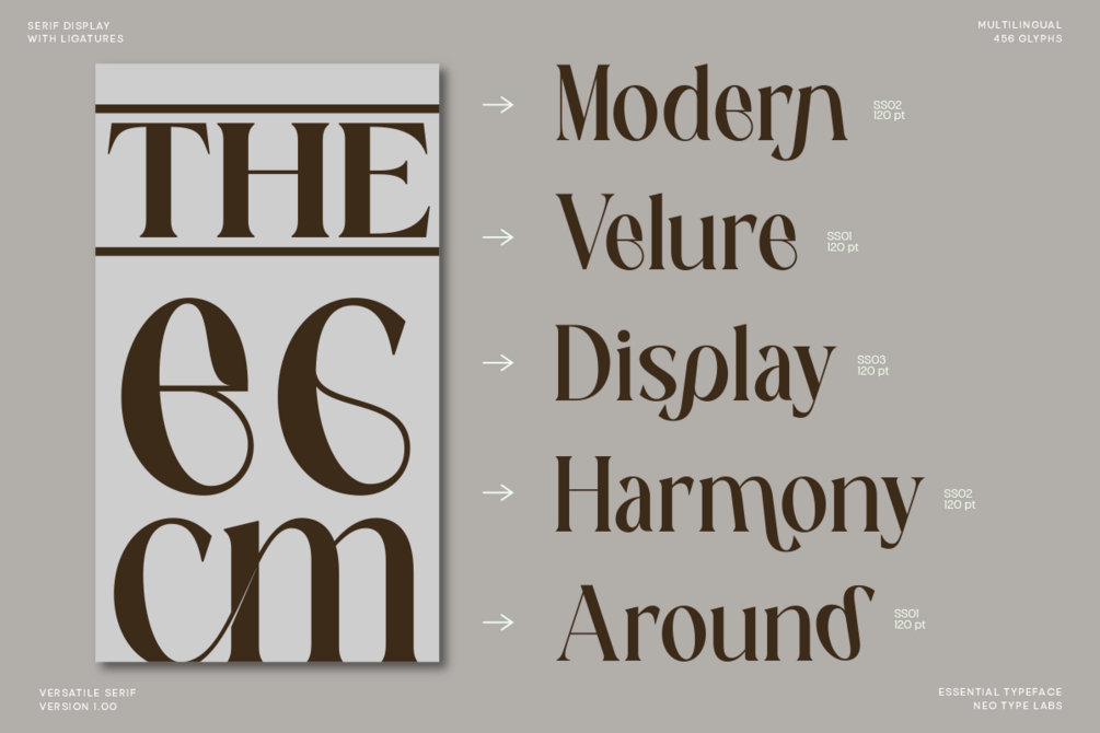 With 456 multilingual glyphs and versatile alternates, Palm Emile allows creative freedom for designers who seek both luxury and individuality in their typography.